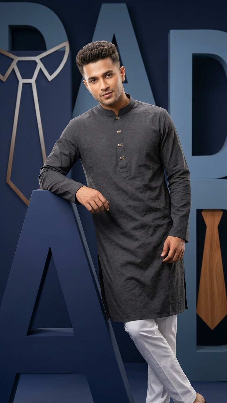Discover our Men's Black Crepe Fabric Panjabi Tunic, offering sophisticated style and exceptional comfort. Perfect for traditional events, Eid, or festive occasions. Shop this elegant and breathable ethnic wear for men.